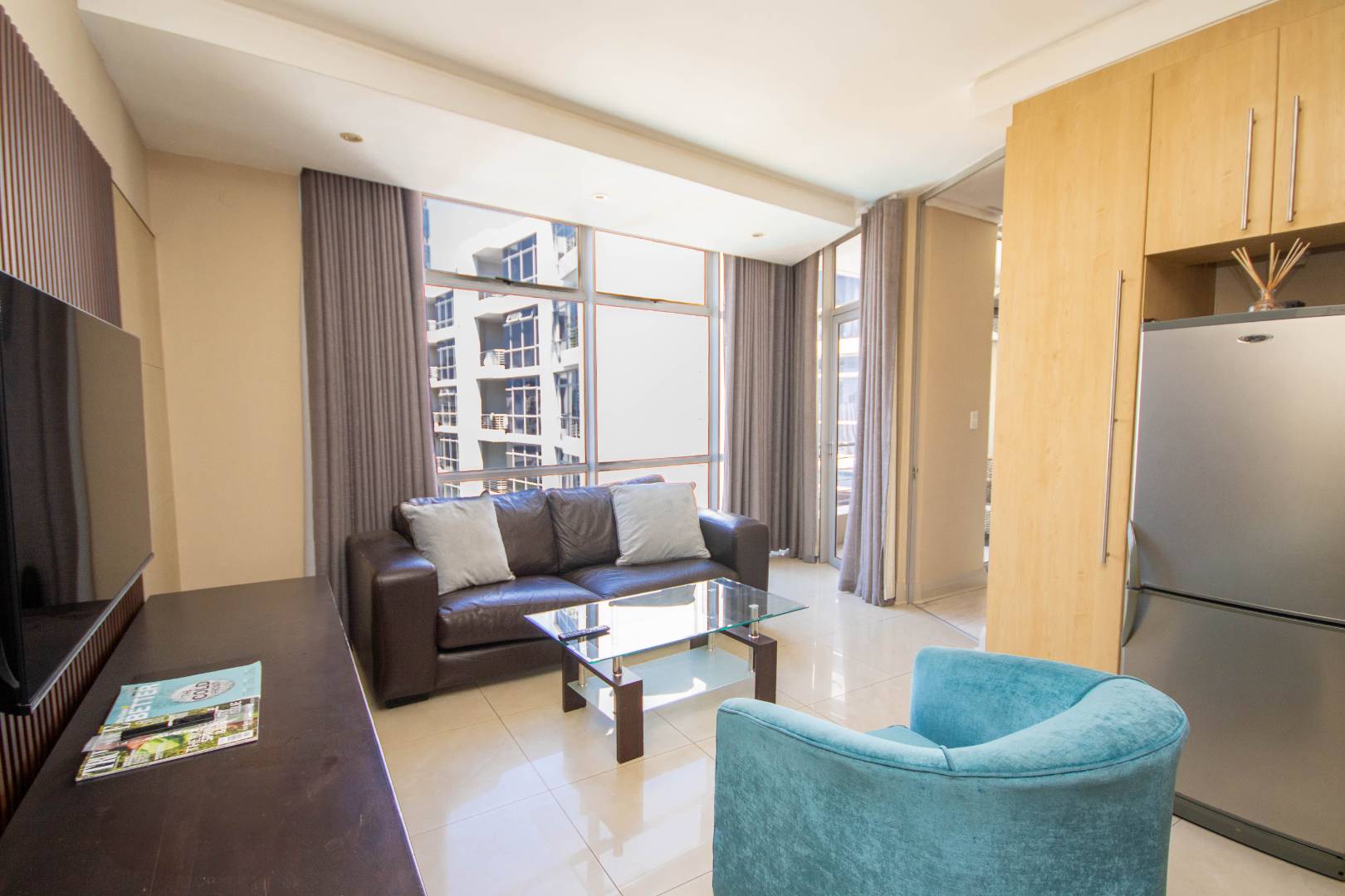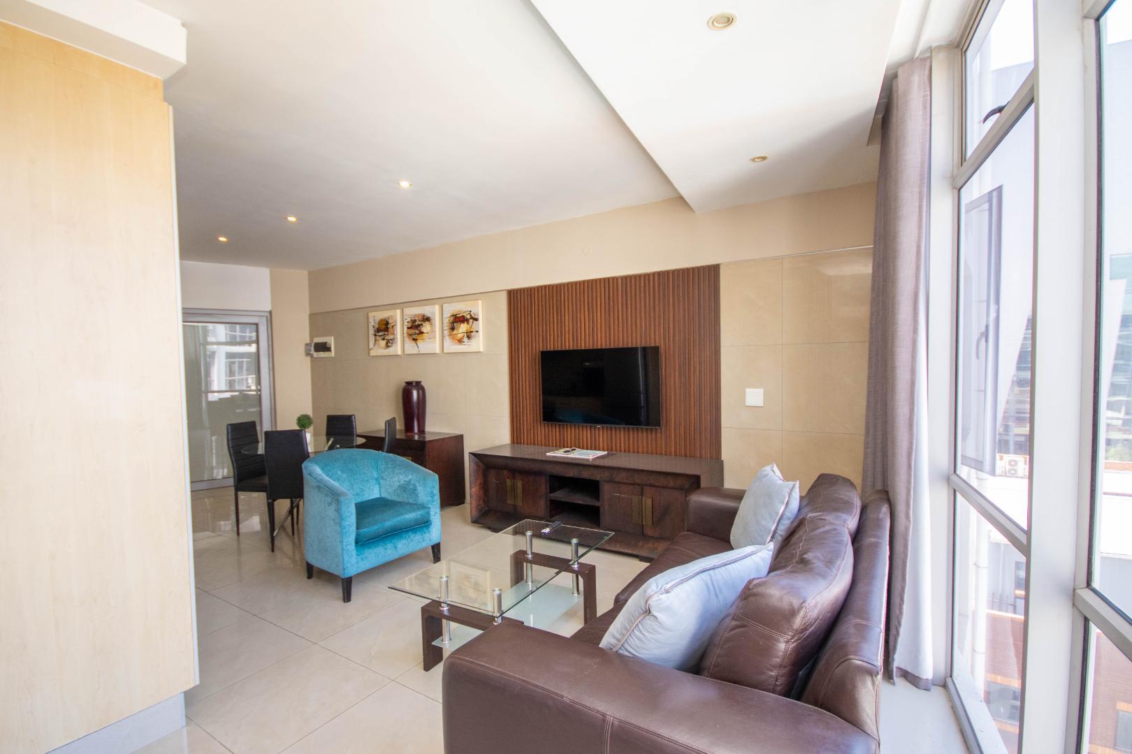 A lovely FURNISHED 1 bedrooms, 1.5 bathroom 6th floor apartment complex in Sandton CBD.